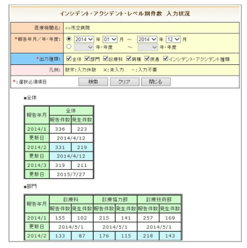 インシデント・アクシデント・レベル別件数 入力状況画面